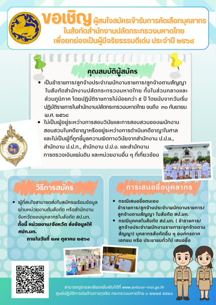 กระทรวงมหาดไทย มอบรางวัล “พลเมืองดี” และ “ข้าราชการผู้มีจริยธรรมดีเด่น” ประจำปี 2567 วันนี้ (1 เม.ย....